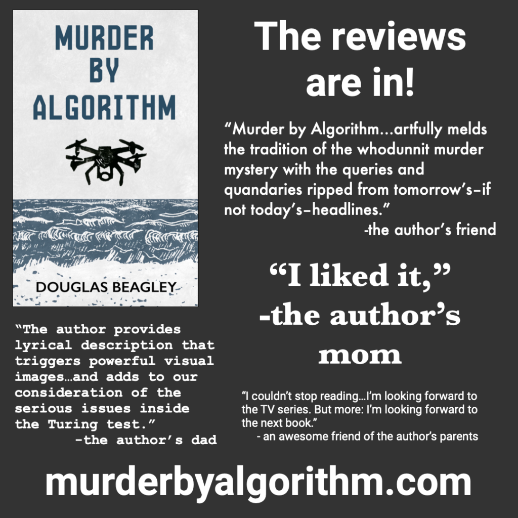 The critics have sent me their thoughts on Murder by Algorithm (which I must of course here repeat is available wherever books are sold).
